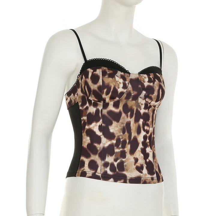 Leopard print sweetheart neck cami top