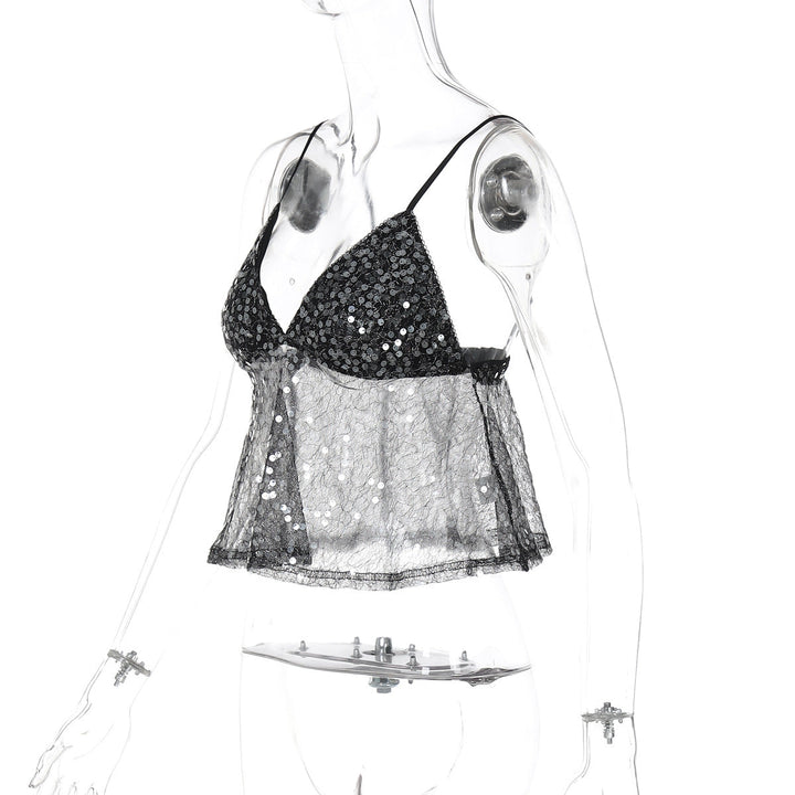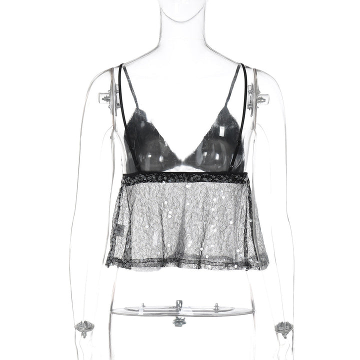 Glitter v neck backless cami top