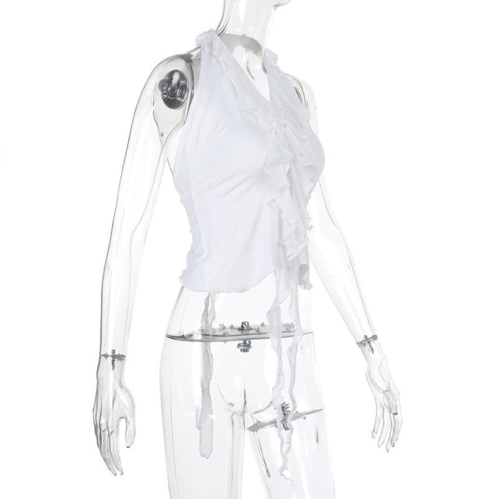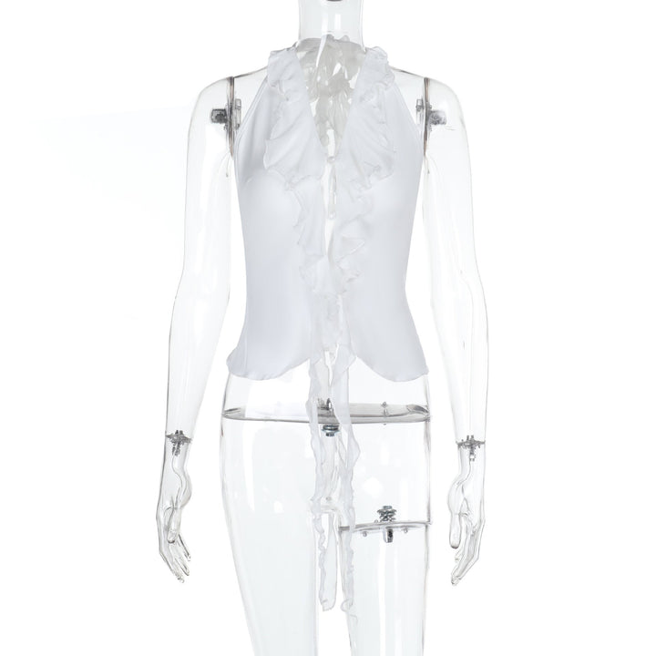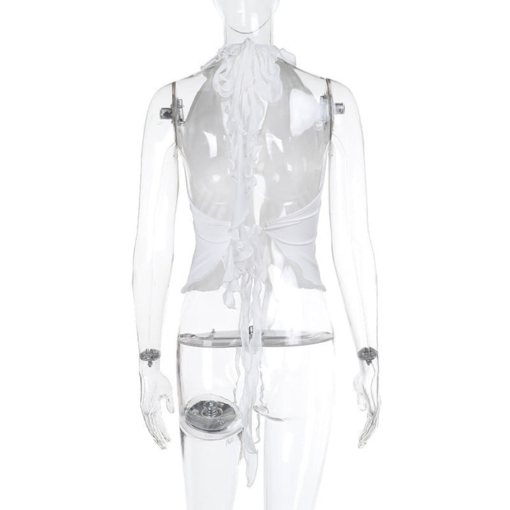 Halter backless ruffle self tie top