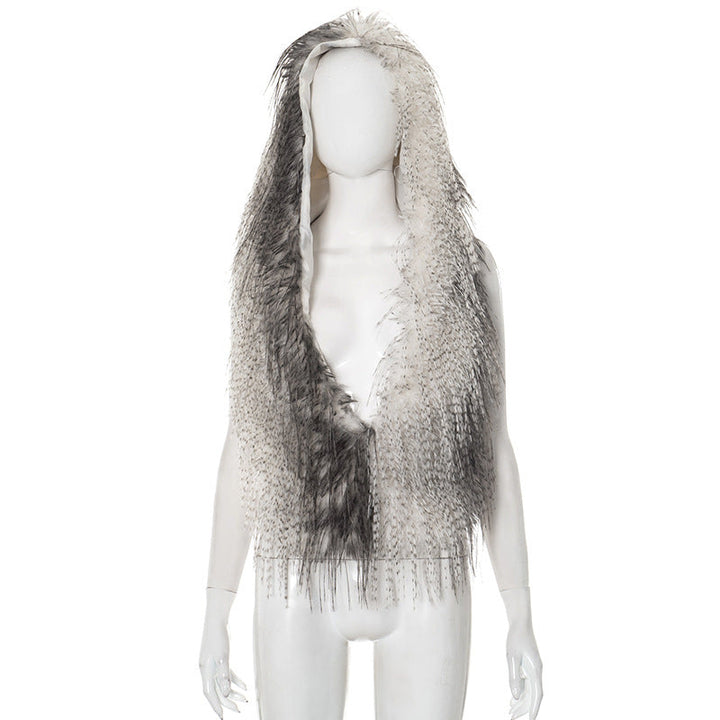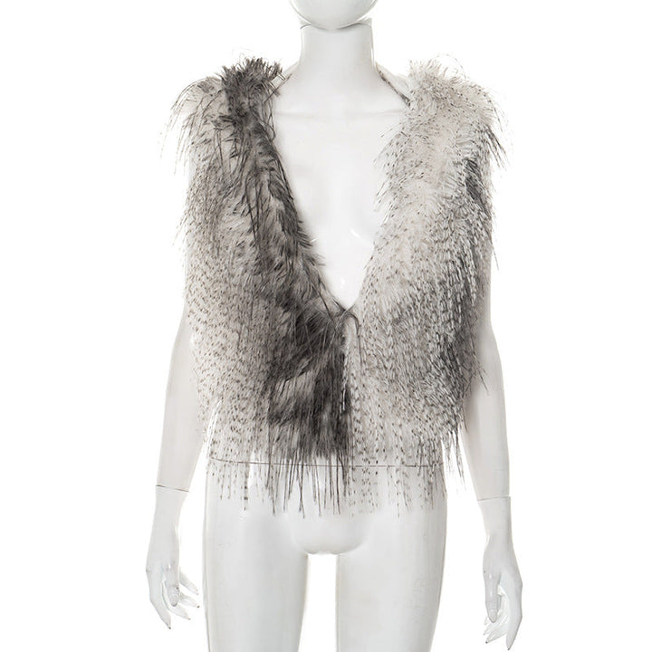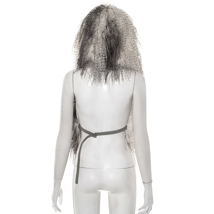 Hoodie fluffy self tie v neck backless top