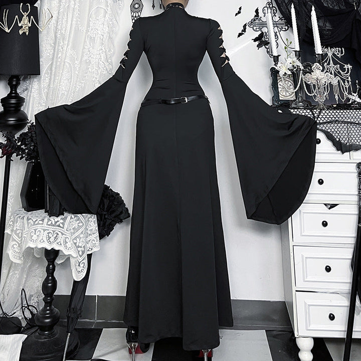 Long flared sleeve hollow out high slit maxi dress