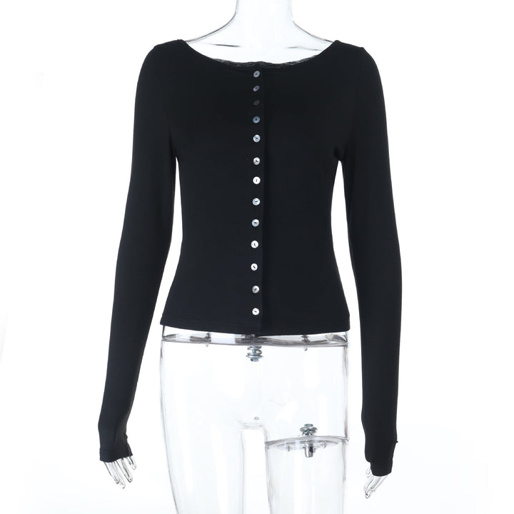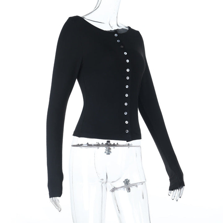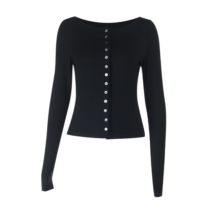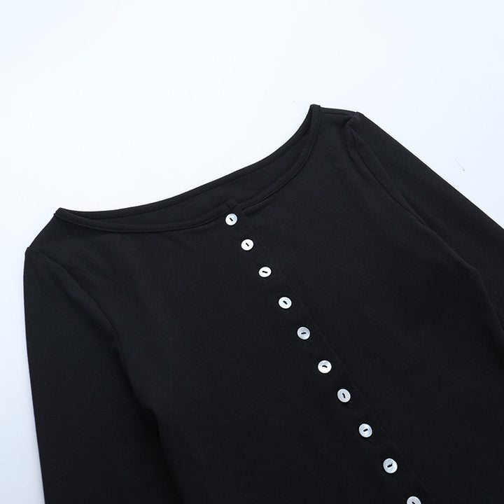 Long sleeve button solid top