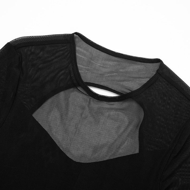 Long sleeve crewneck ruched mesh hollow out maxi dress