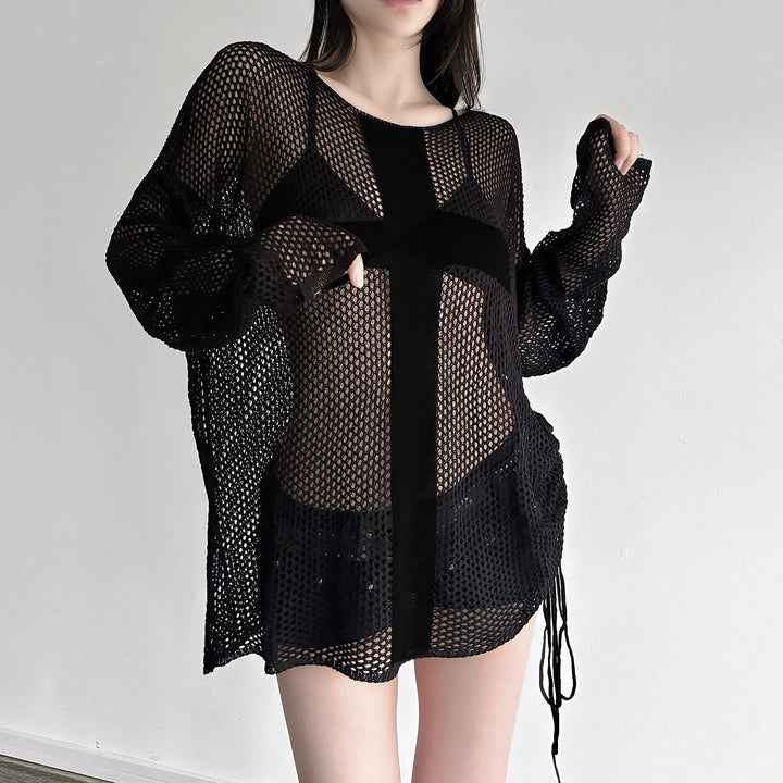 Long sleeve hollow out cross pattern top