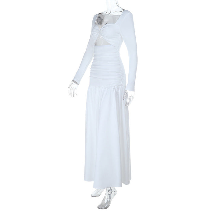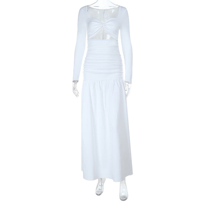 Long sleeve hollow out ruched maxi dress