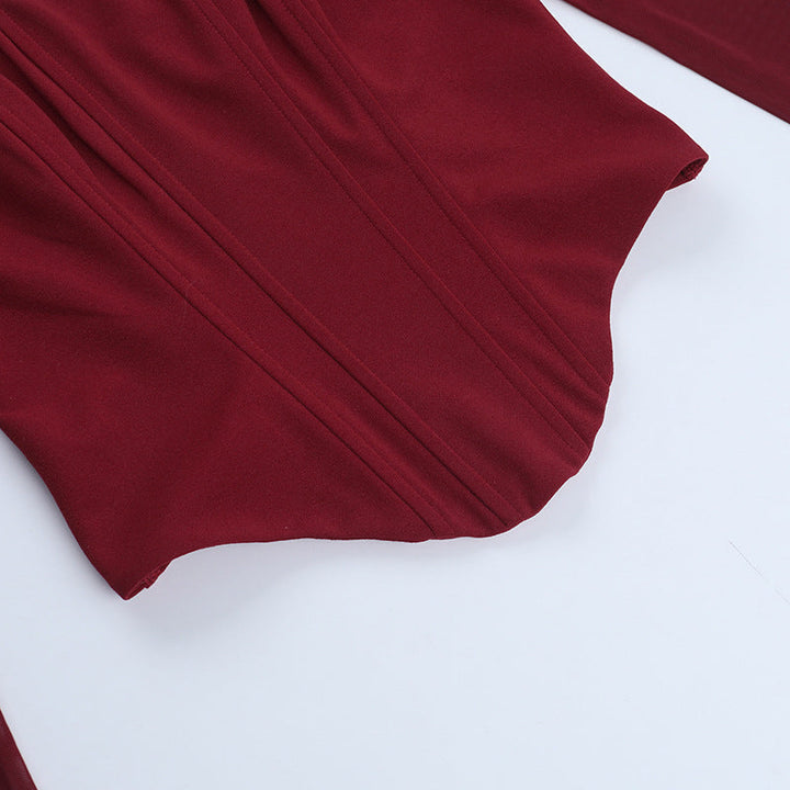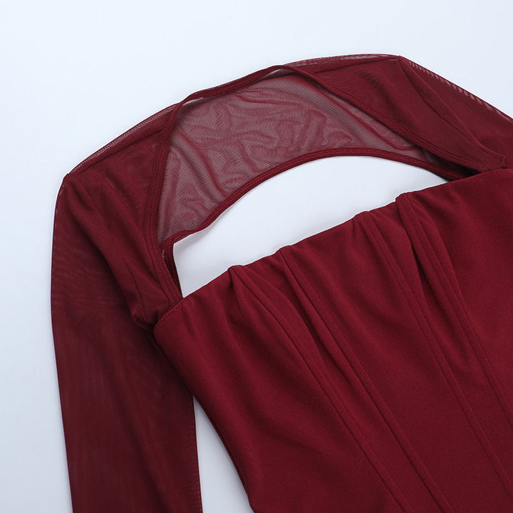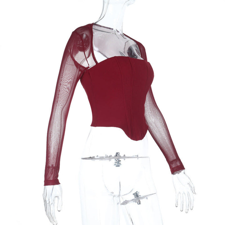 Long sleeve mesh square neck zip-up corset top