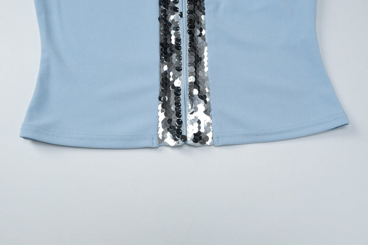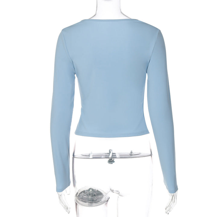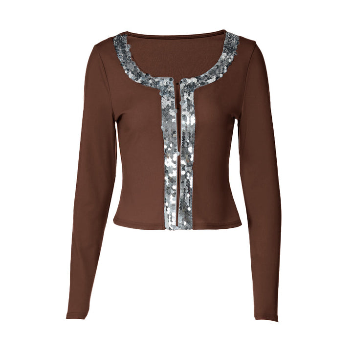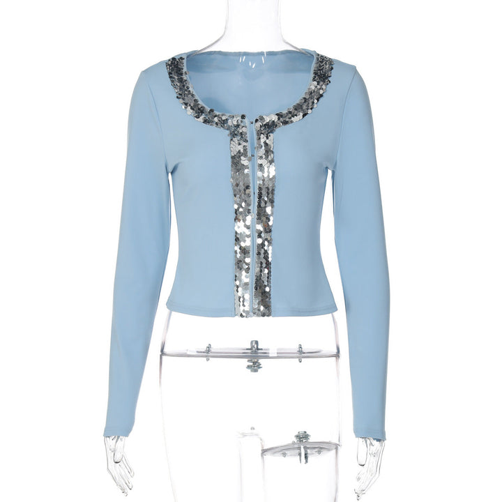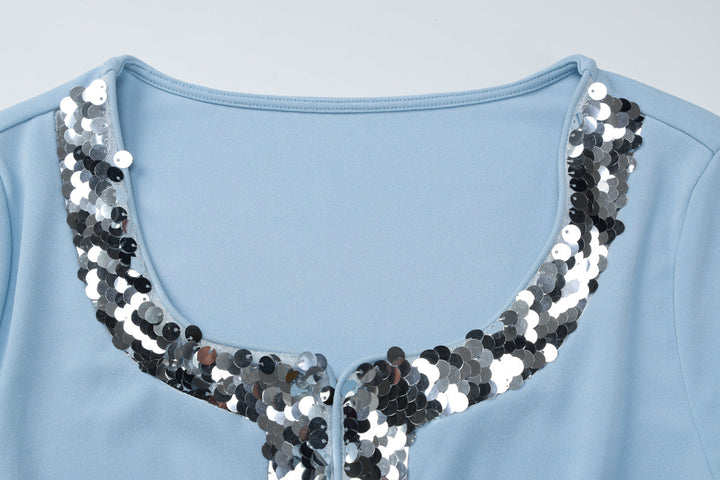 Long sleeve round neck glitter button top