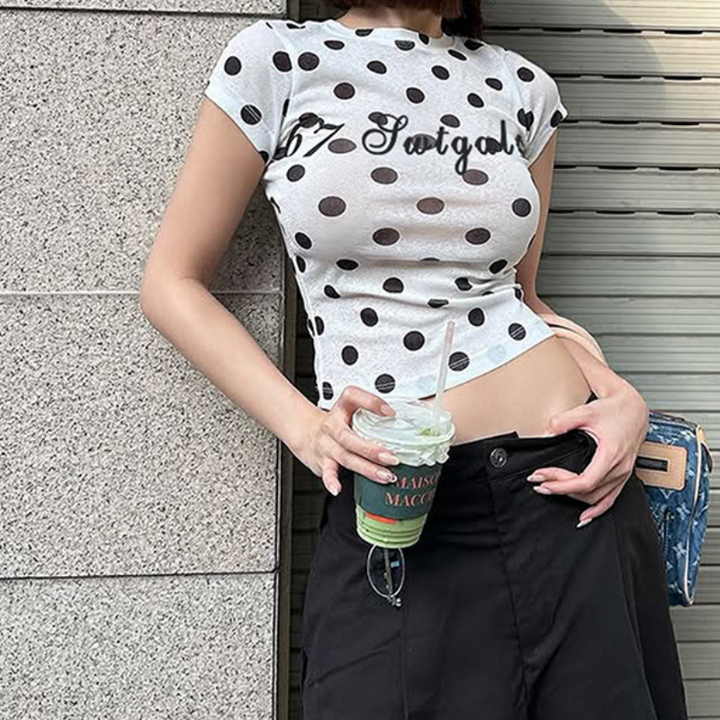 Polka dot letter crewneck short sleeve top