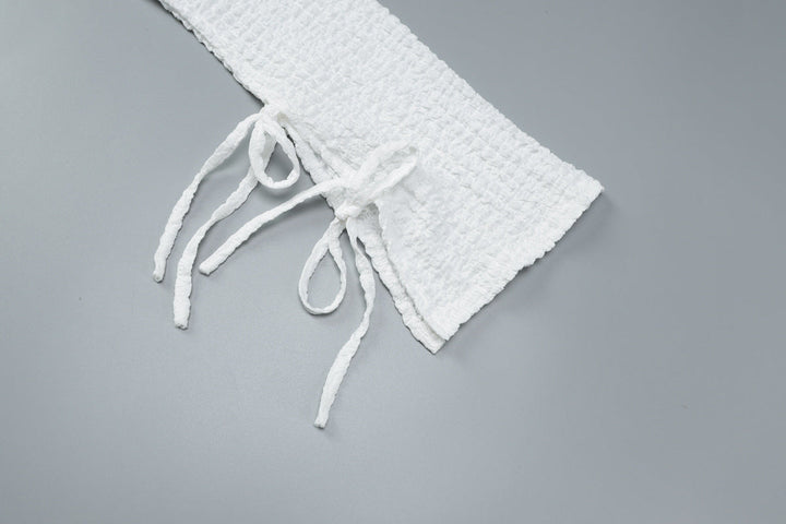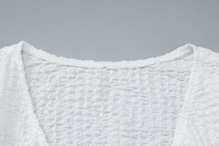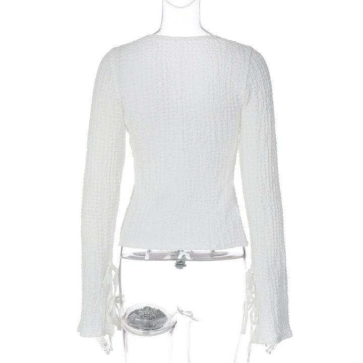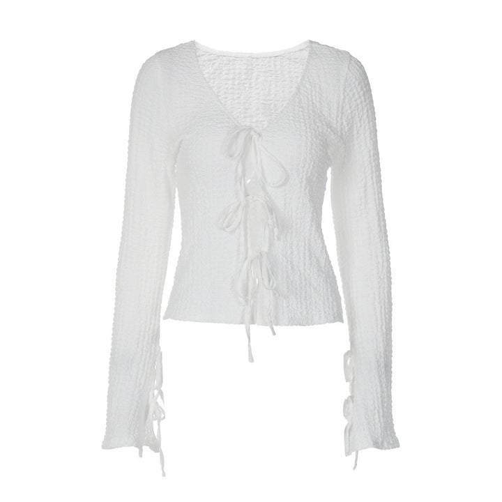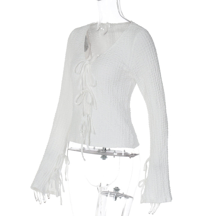 Self tie v neck long sleeve textured solid top