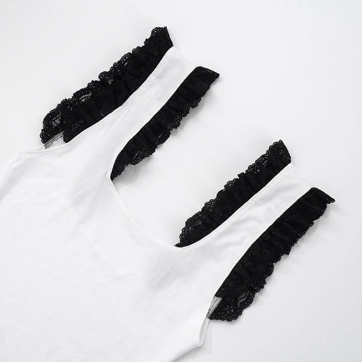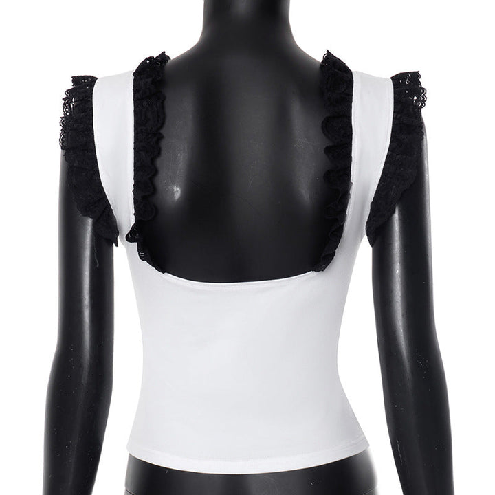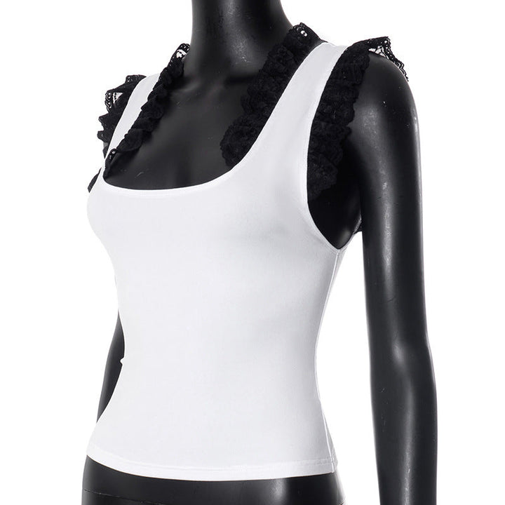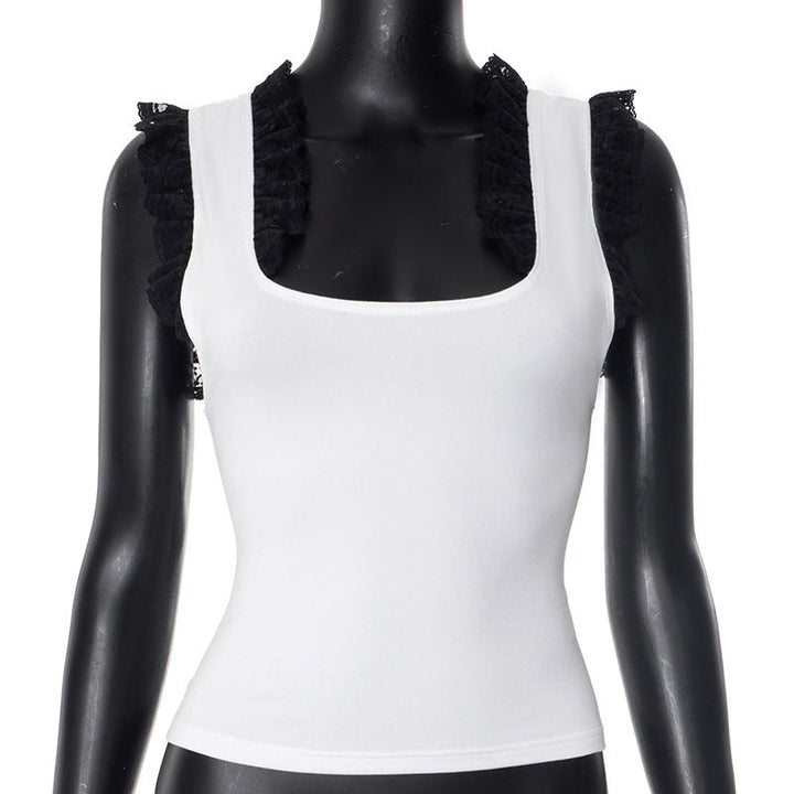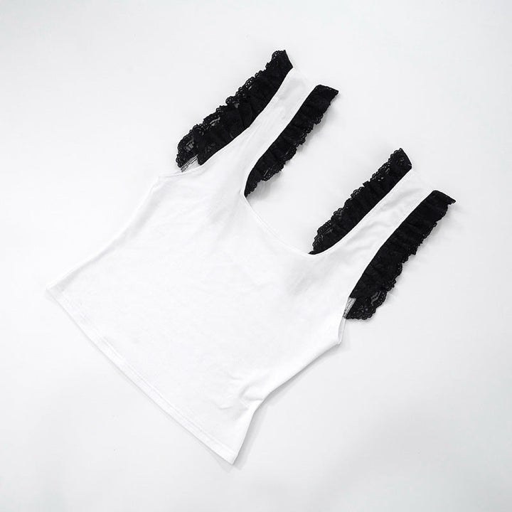 Square neck lace hem tank top