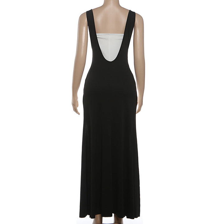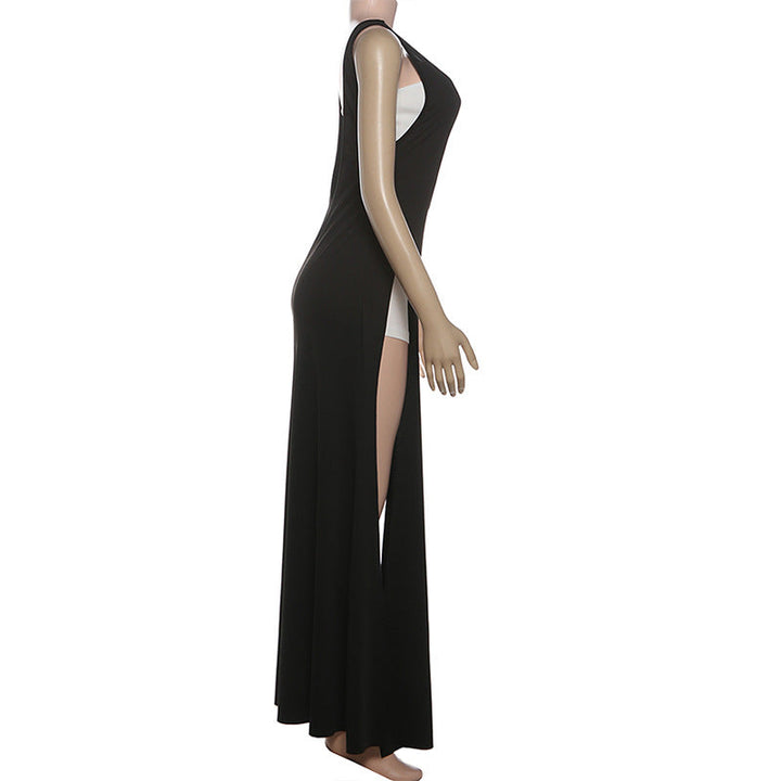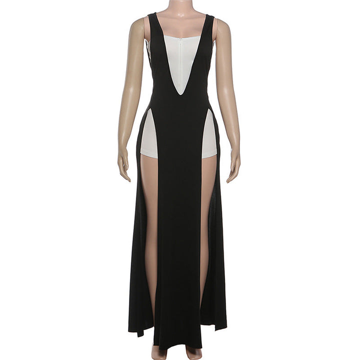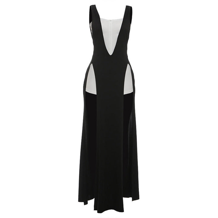 Square neck zip-up high slit maxi dress