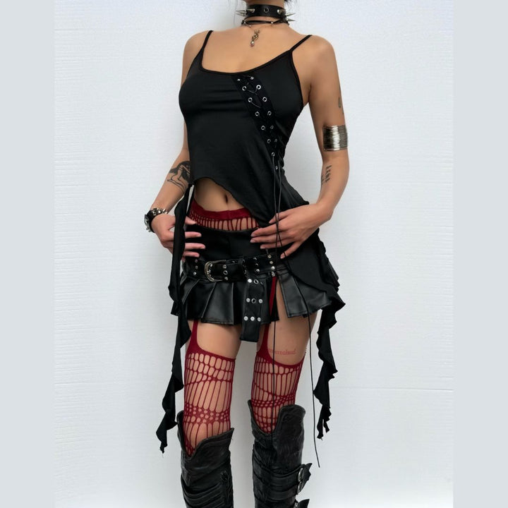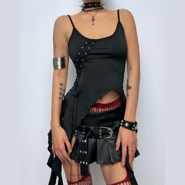 U neck ruffle lace up cami top
