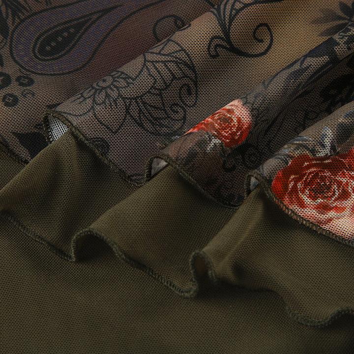 Irregular flower print mesh tube top