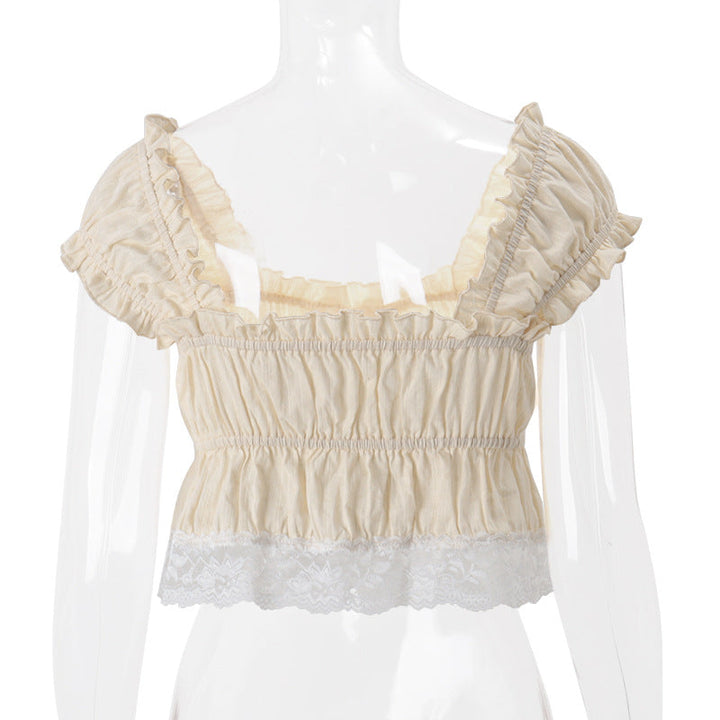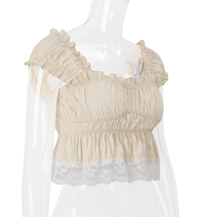 Cap sleeve smocked lace hem ruffle top
