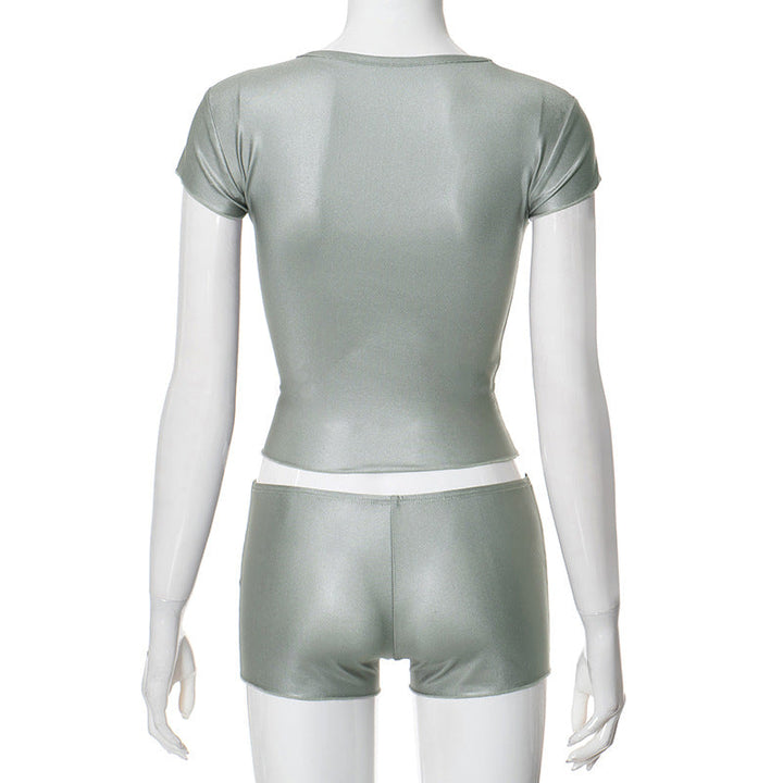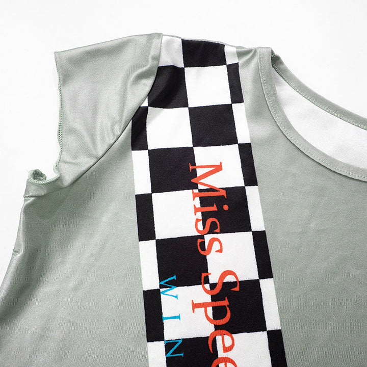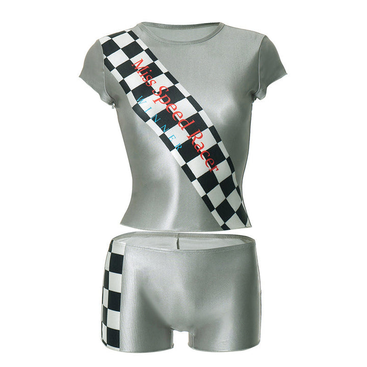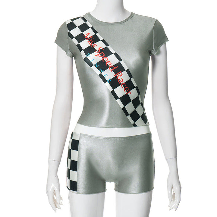 Crewneck short sleeve plaid print pant set
