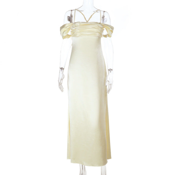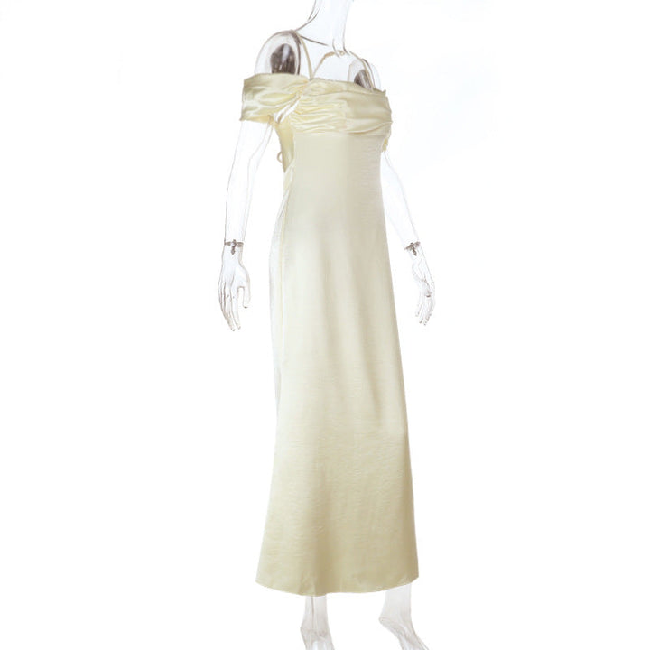 Cross back satin square neck off shoulder maxi dress