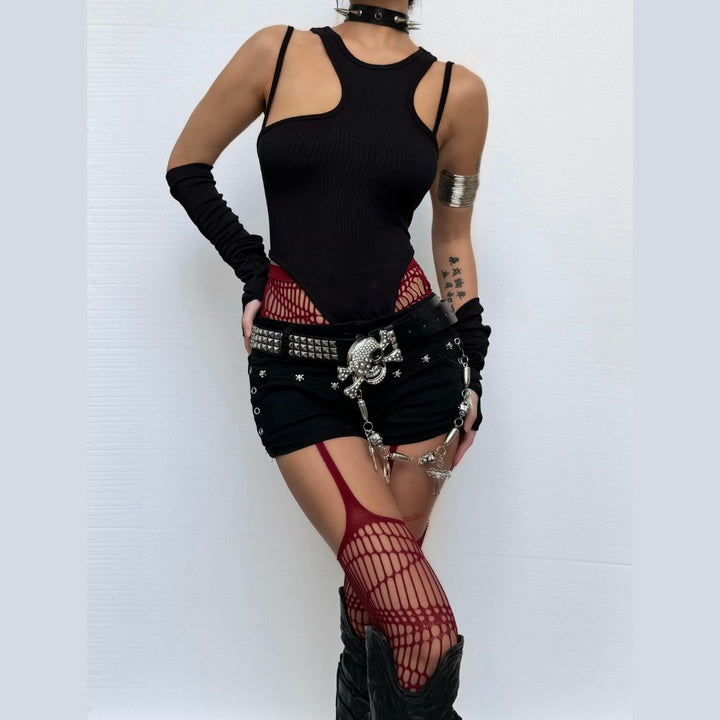 Gloves irregular solid cami crewneck bodysuit y2k 90s Revival Techno Fashion