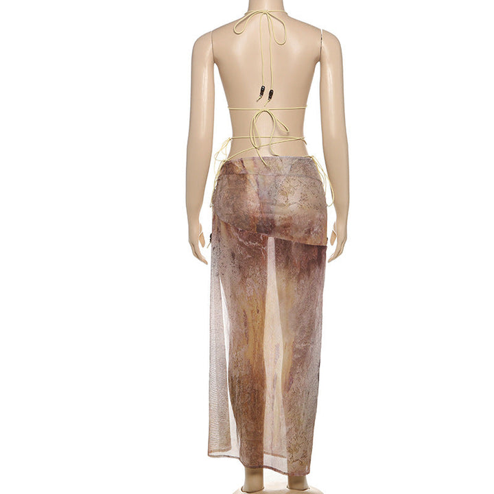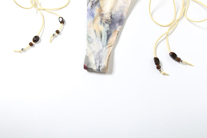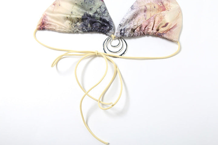 Halter contrast self tie 3 piece bikini swimwear