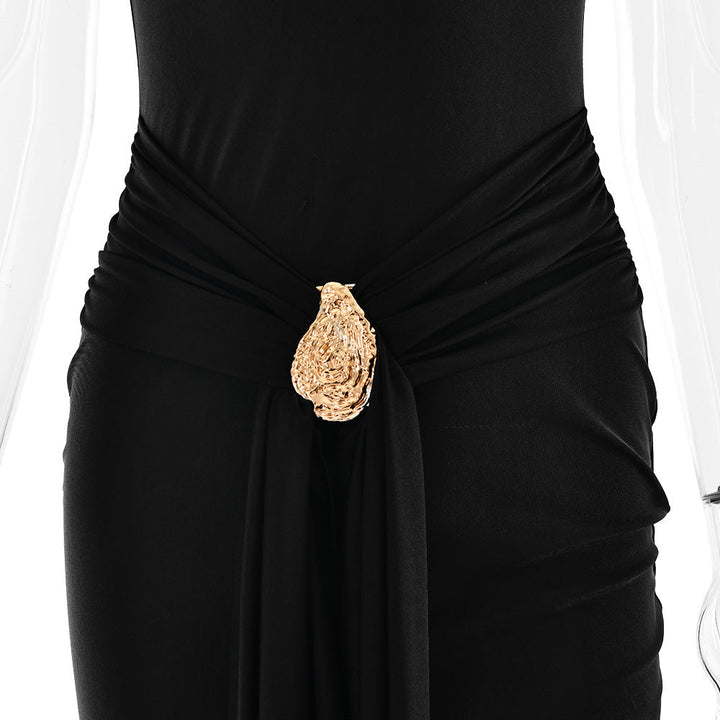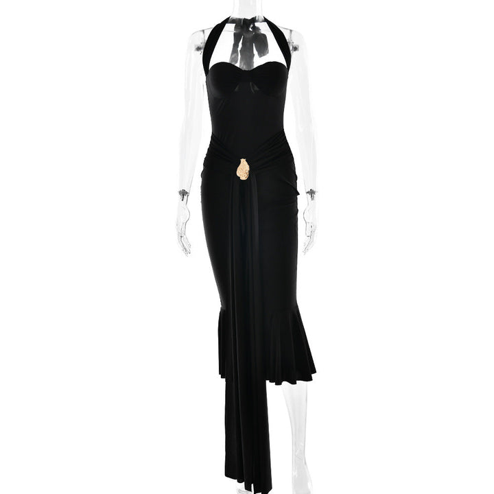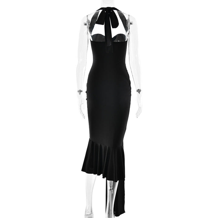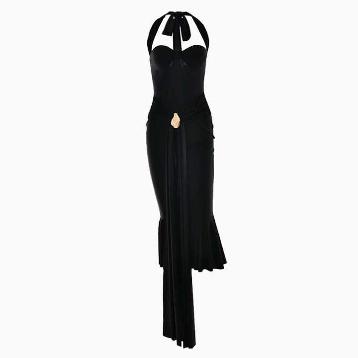 Halter self tie v neck backless midi dress