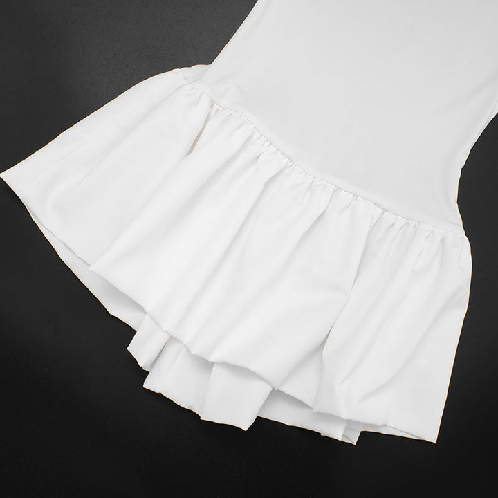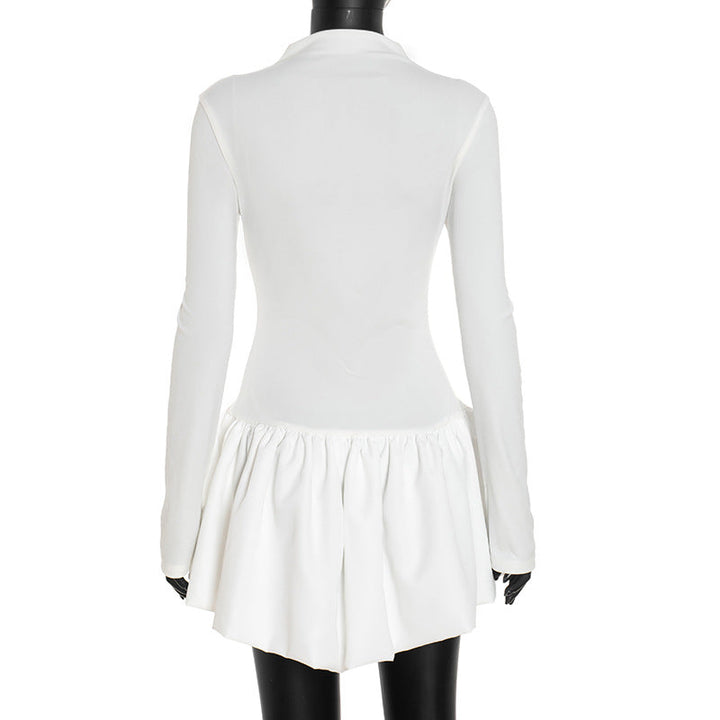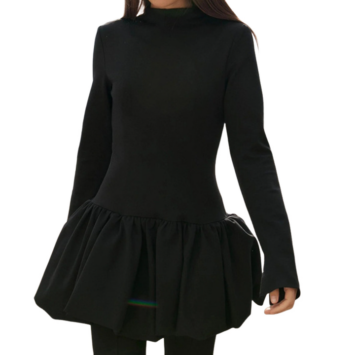 High neck long sleeve ruffle mini dress
