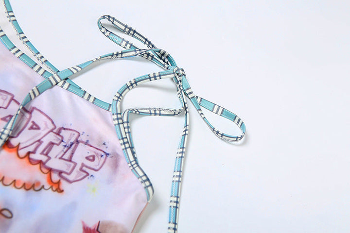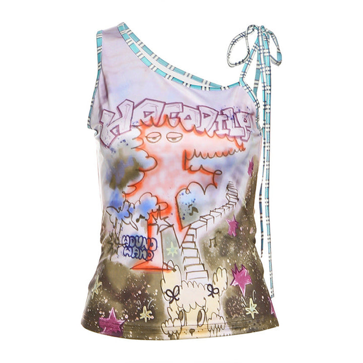 Irregular self tie print contrast top