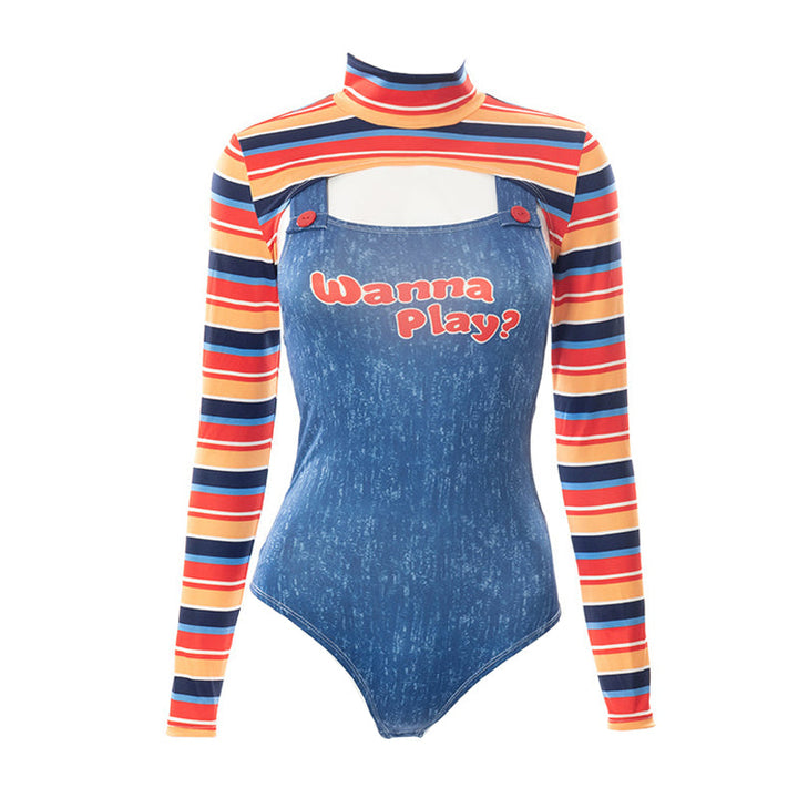 Long sleeve high neck letter pattern 2 piece bodysuit
