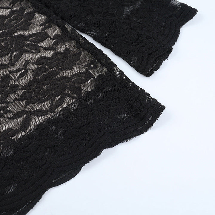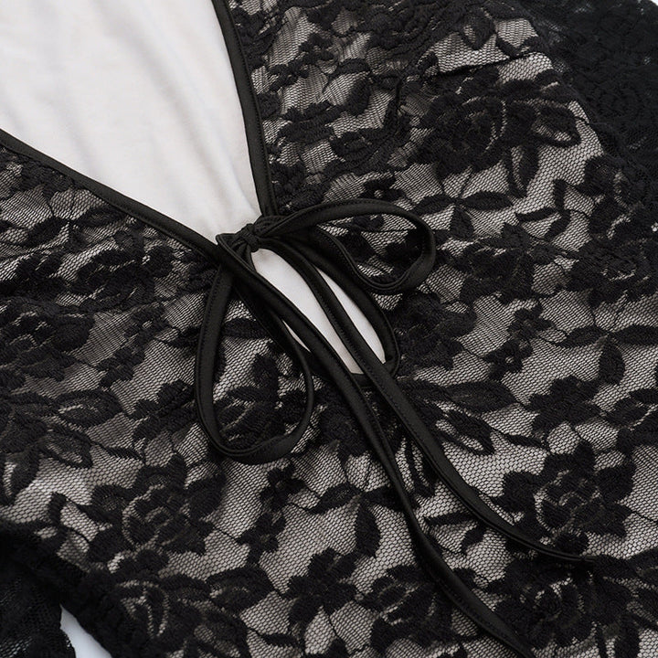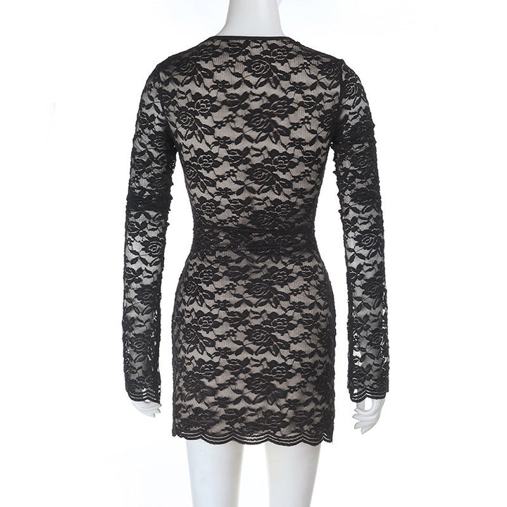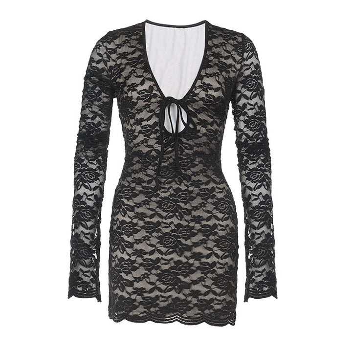 Long sleeve lace self tie hollow out mini dress