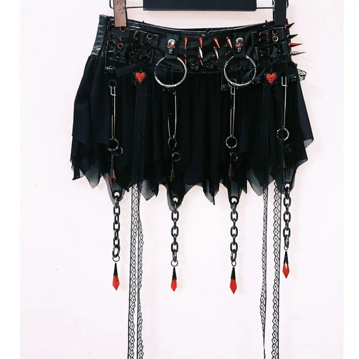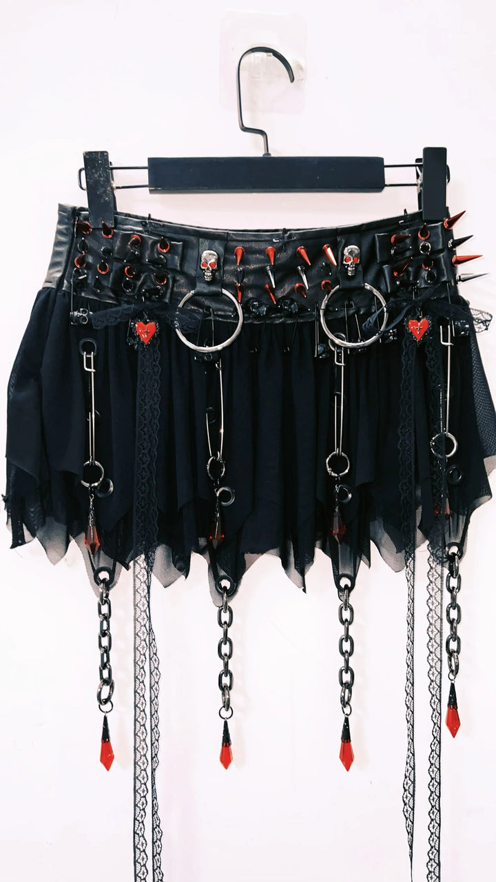 O ring rivet metal chain skull applique cami top