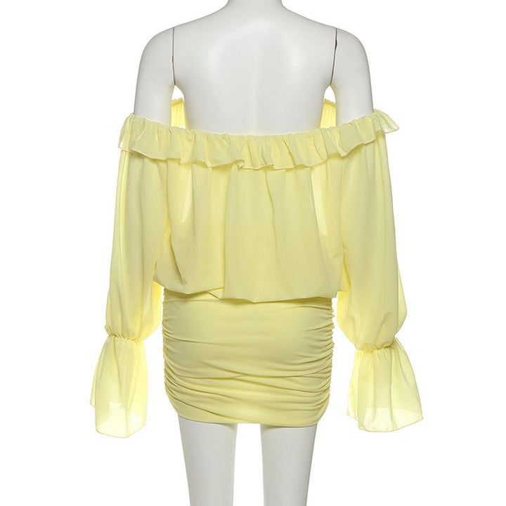 Off shoulder ruched long sleeve self tie mini dress