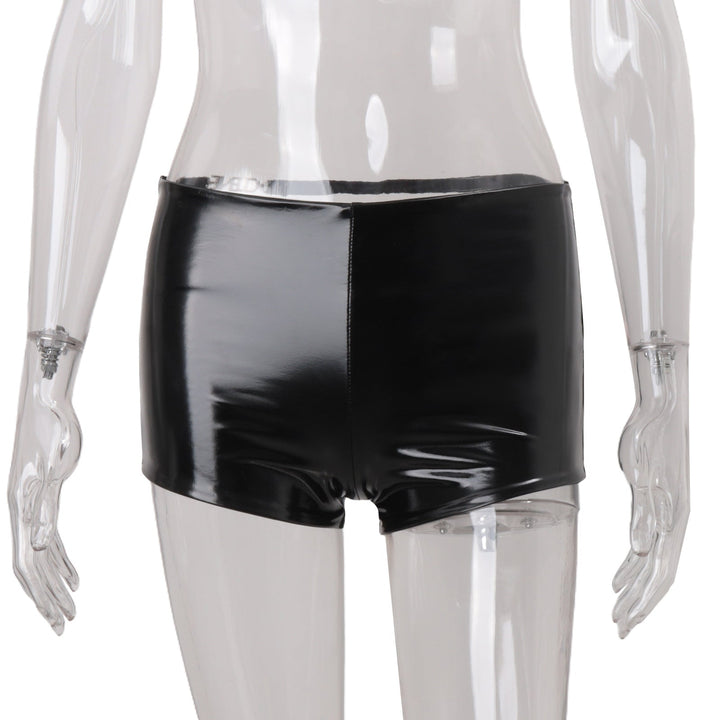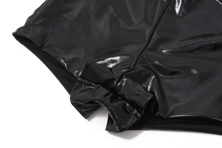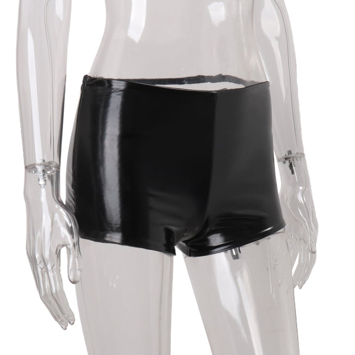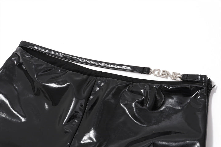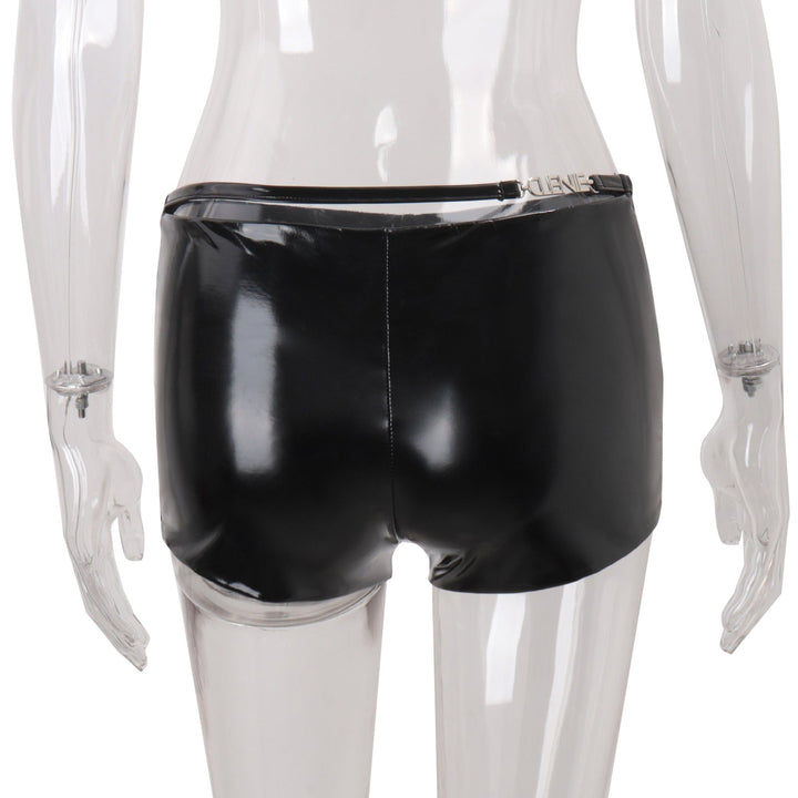PU leather metal tag low rise short pant