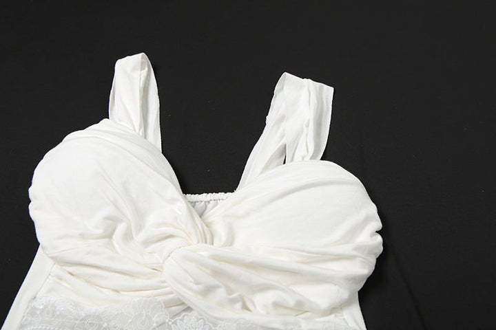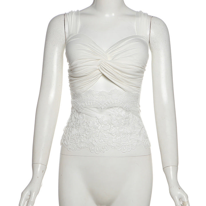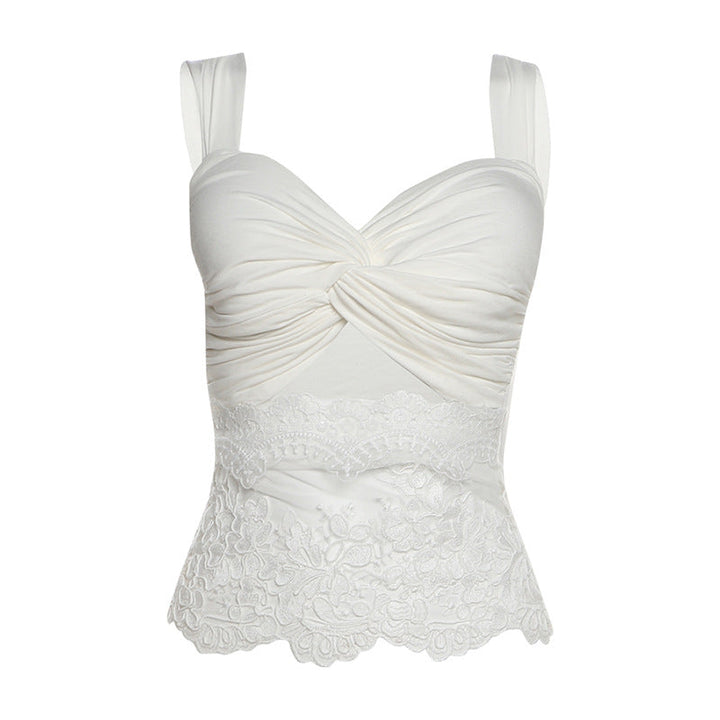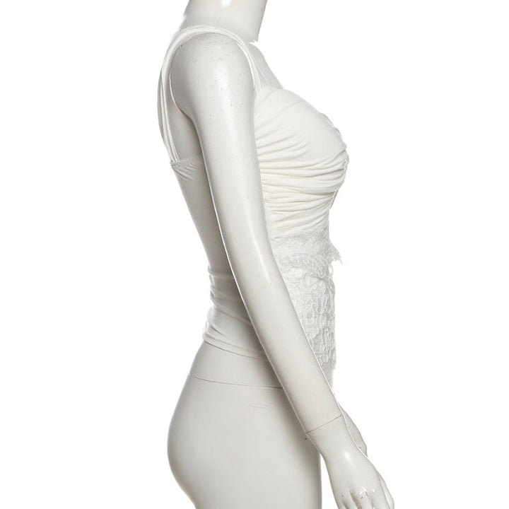 Ruched lace patchwork hollow out top