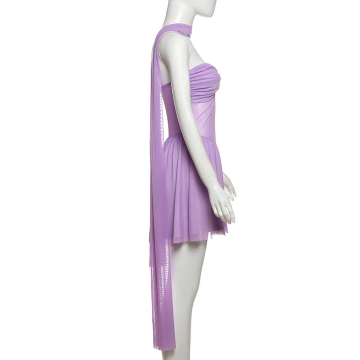 Ruched sweetheart neck mesh tube mini dress