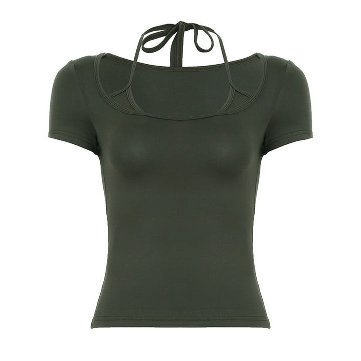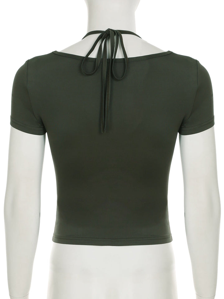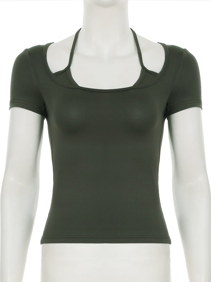 Short sleeve halter self tie square neck top