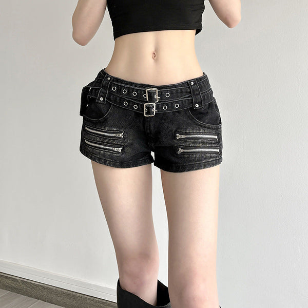 Skull applique rivet metal chain waist belt