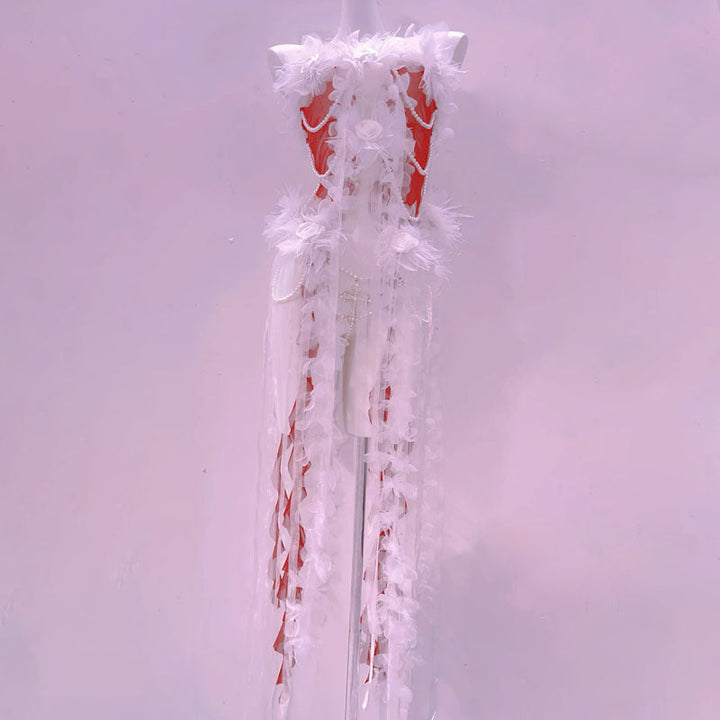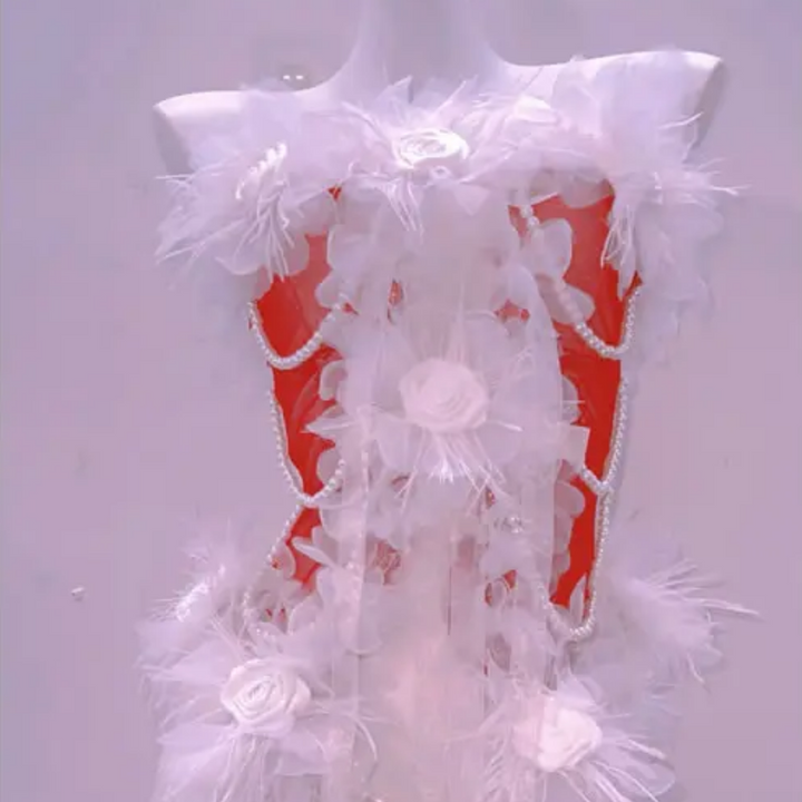 Beaded flower applique slit tube midi dress