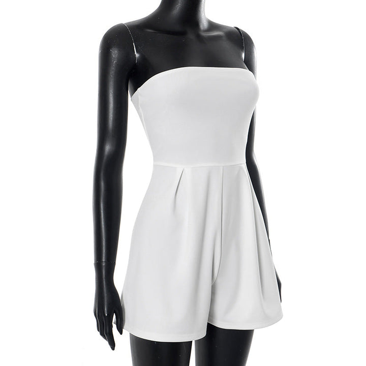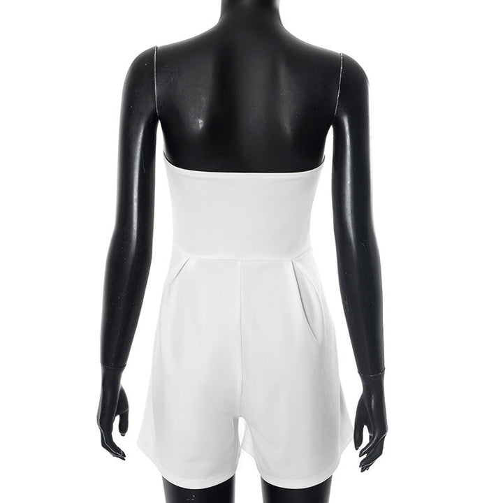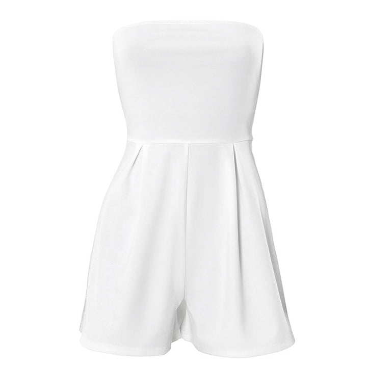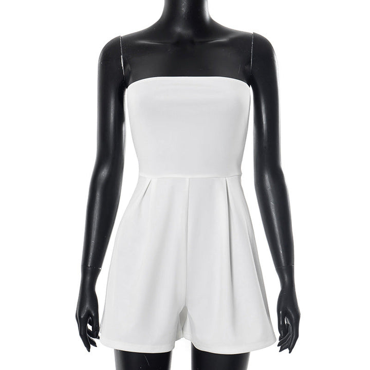 Beige ruched backless tube romper