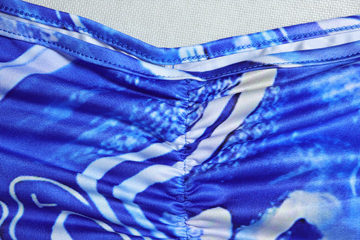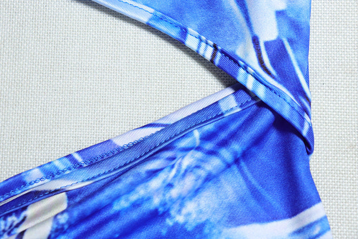 Cross back hollow out ruched print maxi dress