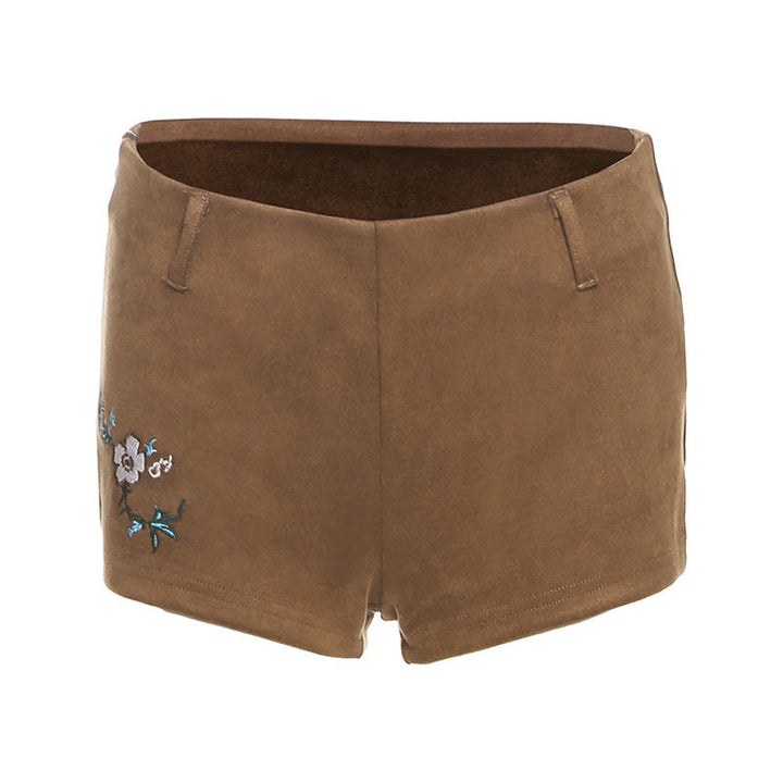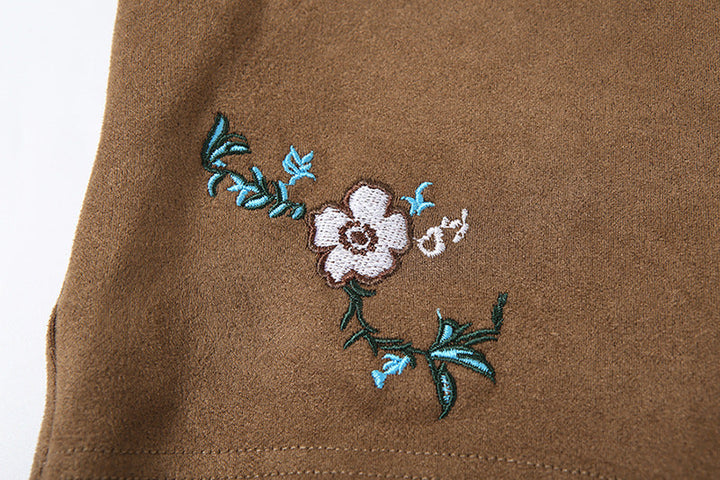Flower embroidery zip-up short pant