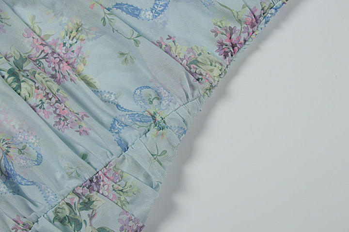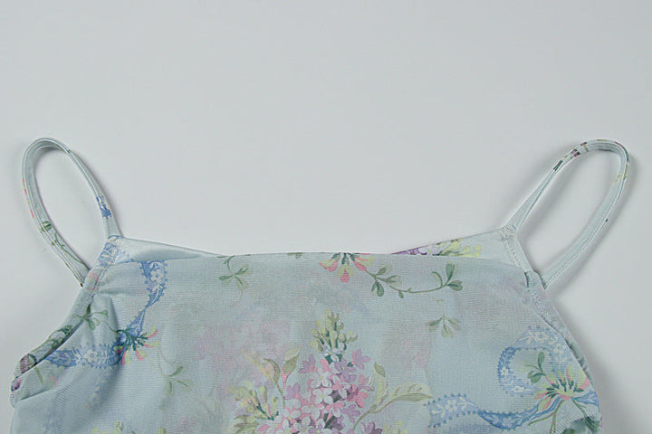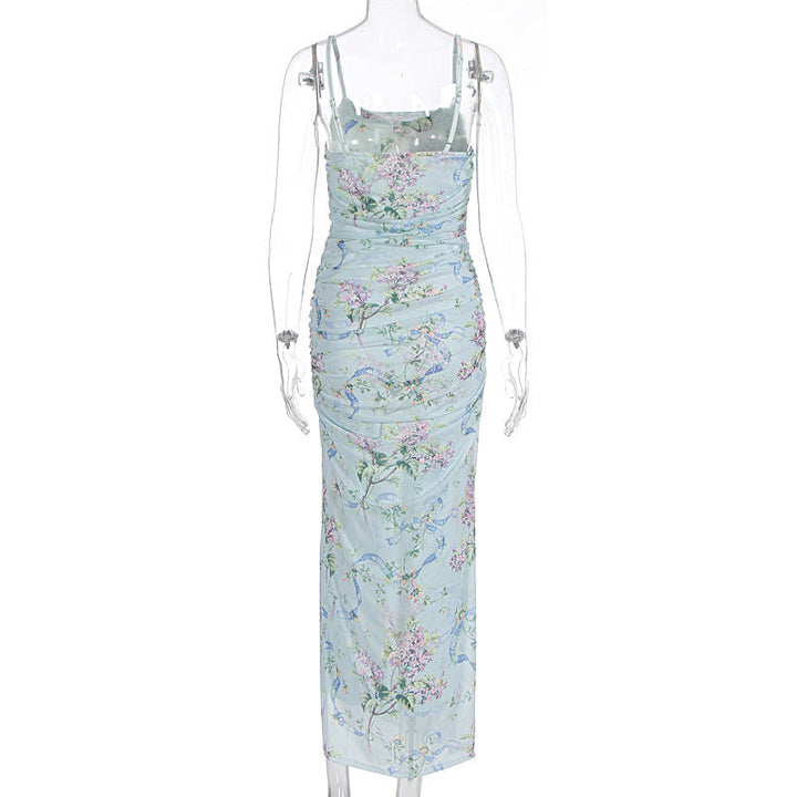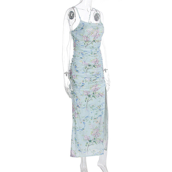 Flower print ruched high slit cami maxi dress