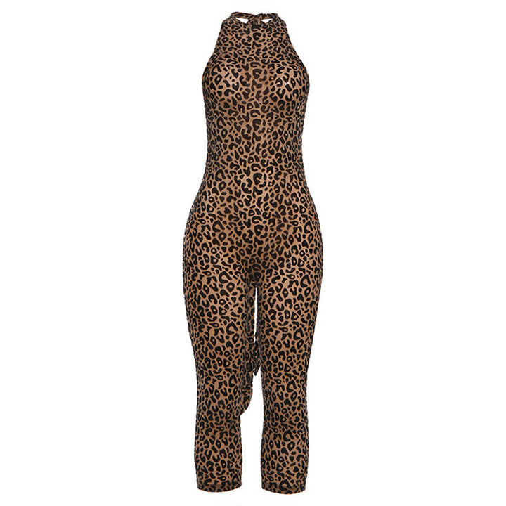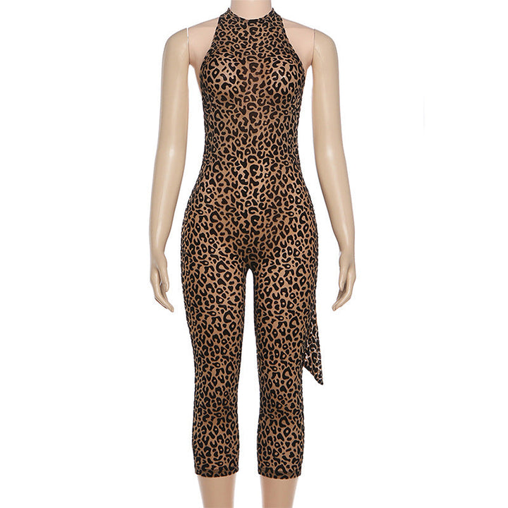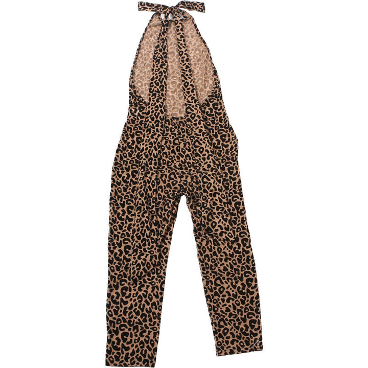 Halter backless leopard print jumpsuit