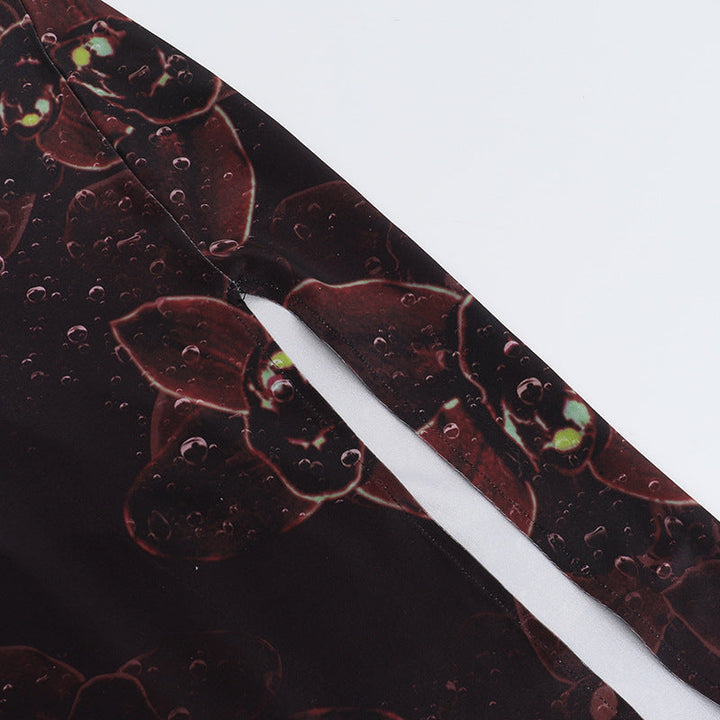 Halter o ring backless flower print slit maxi dress