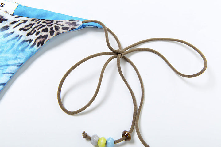Halter self tie lace hem print 3 piece mini skirt set