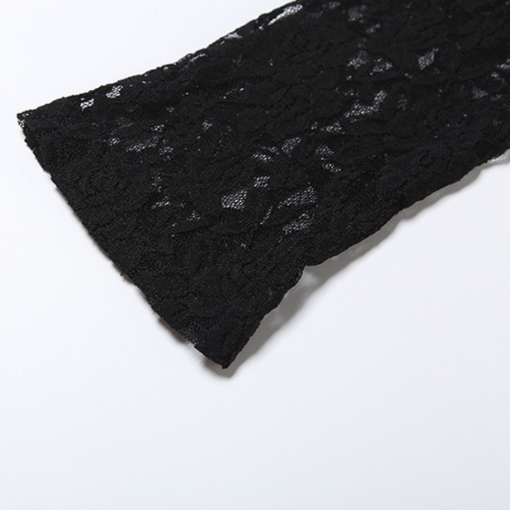 Lace long sleeve v neck solid mini dress
