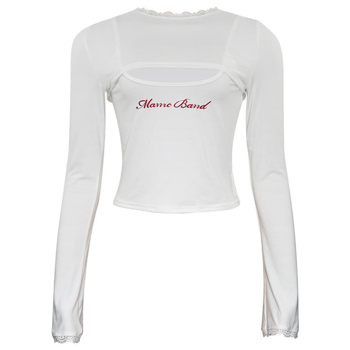 Long sleeve hoodie lace hem embroidery 2 piece top