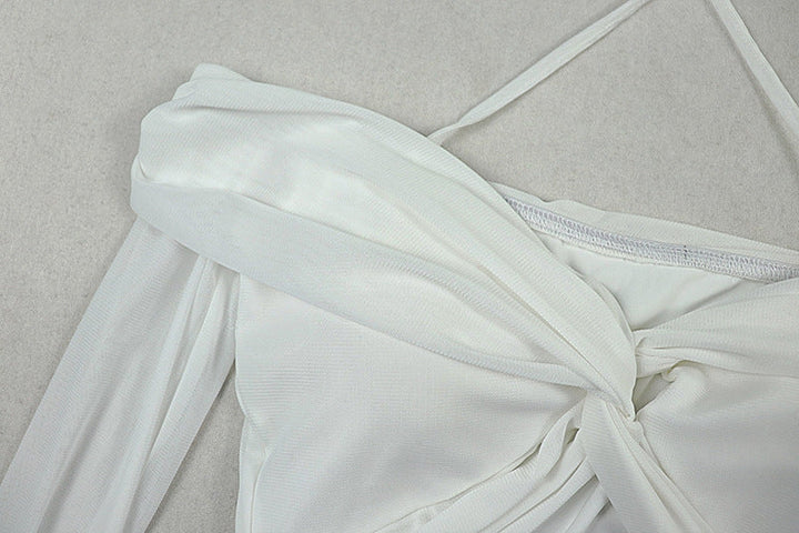 Long sleeve off shoulder halter hollow out mesh maxi dress