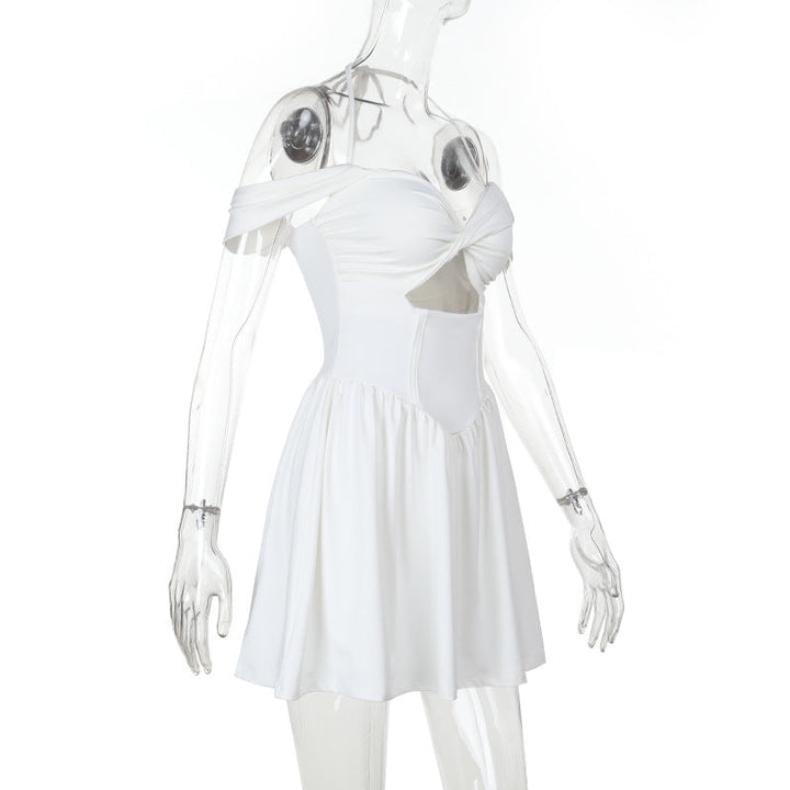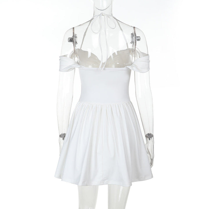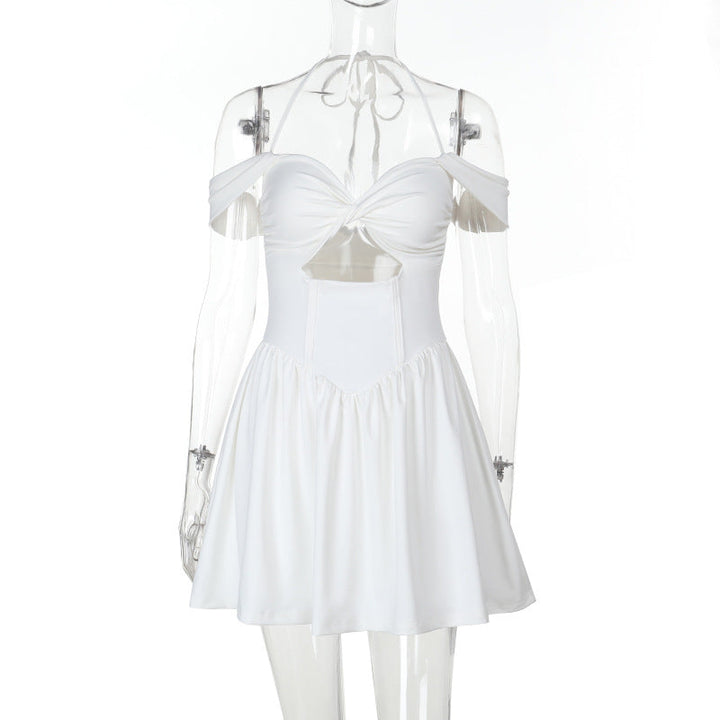 Off shoulder hollow out halter mini dress