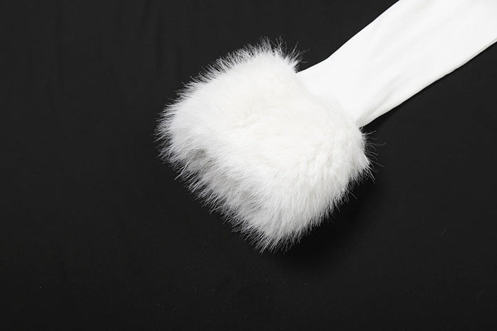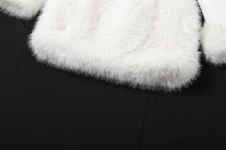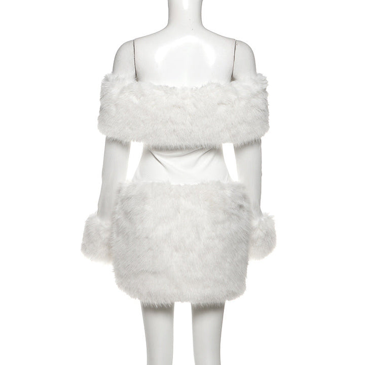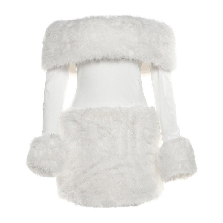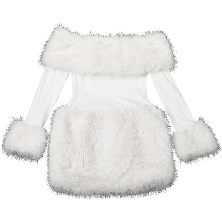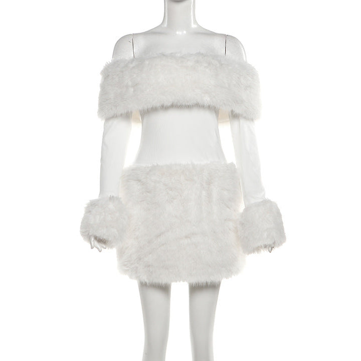 Off shoulder long sleeve fluffy mini dress