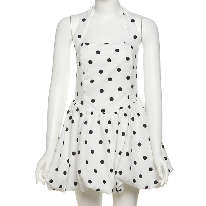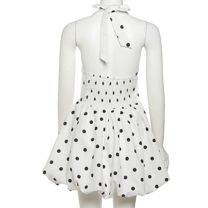 Polka dot halter smocked mini dress