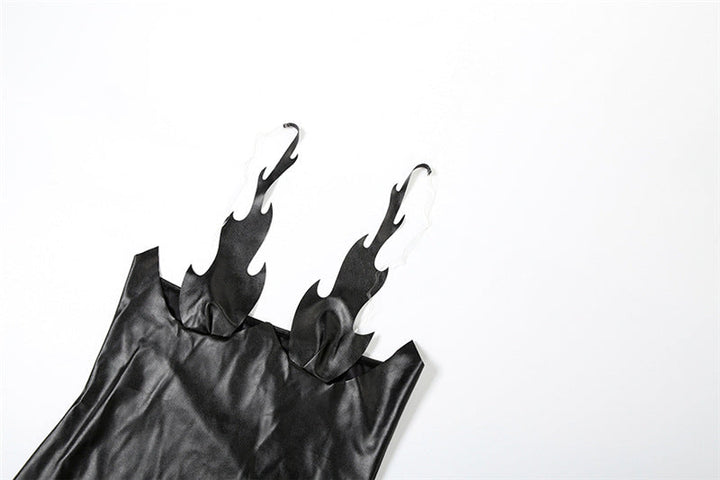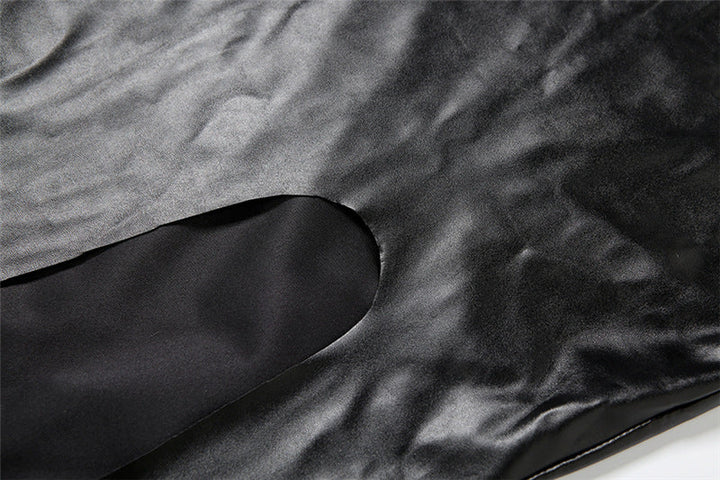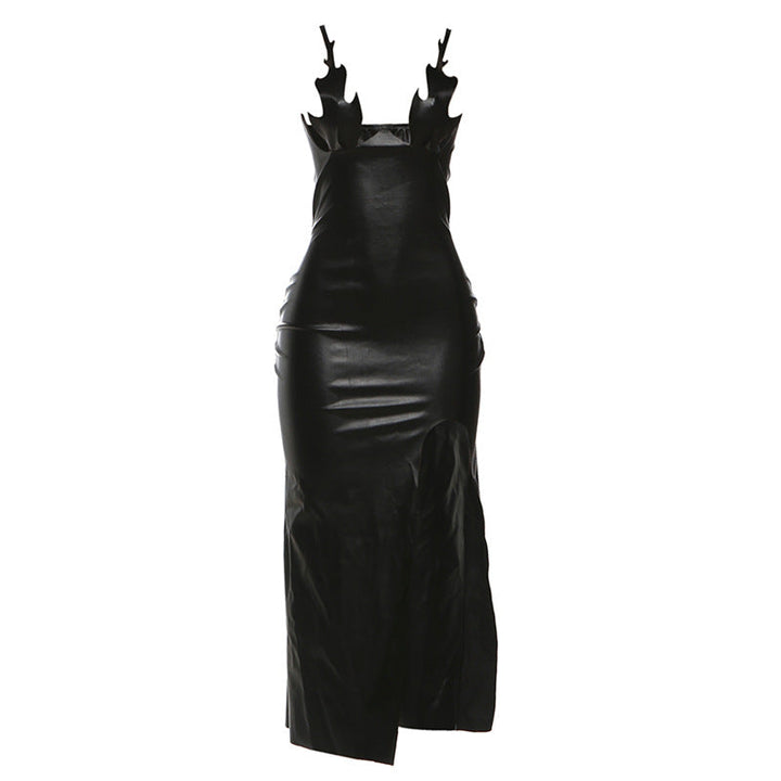 PU leather slit backless maxi dress