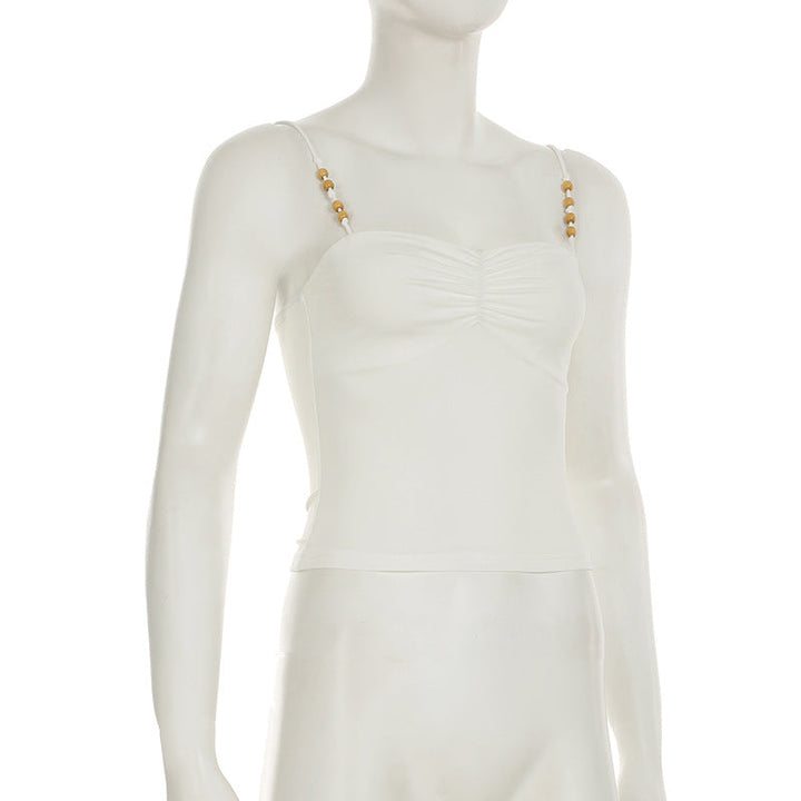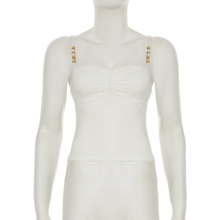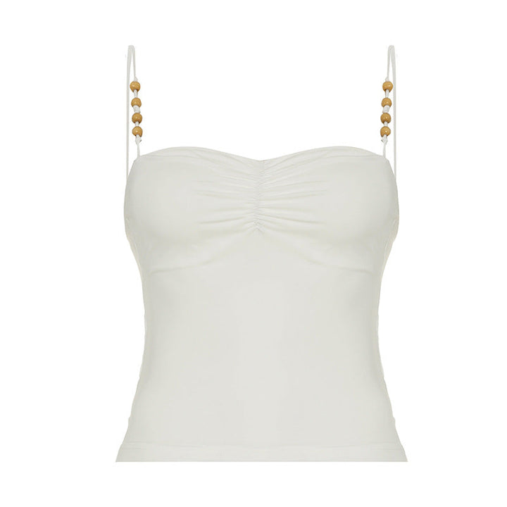 Ruched beaded backless solid cami top